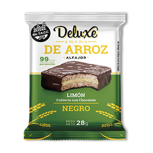Alfajor de Arroz – Limón cubierto con Chocolate Negro – SIn TACC – DELUXE